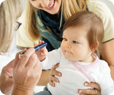 reflexo vermelho, que aparece quando um feixe de luz ilumina o olho do bebê.