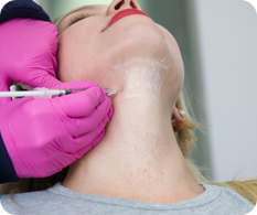 São aplicadas enzimas na região submental, abaixo do queixo, e é possível uma redução no volume de gordura localizada na região.